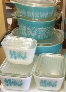 If you have to cook and turn on the oven best to have a set of Pyrex with a cool color. Selection available from Dealer #57.
