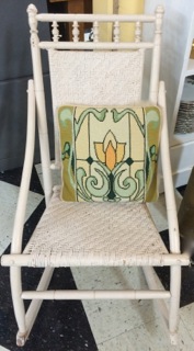 Dealer #91 shows off a needlepoint pillow on a well-loved white wicker rocker. Perfect for the early morning breeze on the porch.