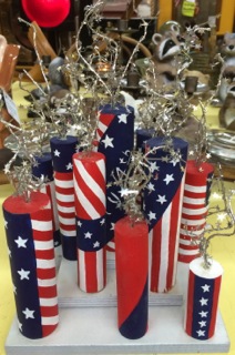 Dealer #69 shows true spirit with several vignettes throughout her corner window space; including this great signage.