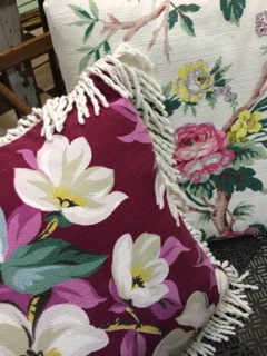 Dealer #4 has some vintage barkcloth pillows for a quick change to the patio chairs as you entertain.