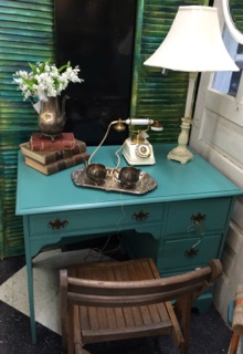 Bold colors on simple pieces pop in this vignette displayed by Dealer #17.