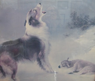 This classic winter print of a beloved dog finding a stray lamb is available from Dealer #88.