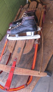 Stars and Splendid welcomes the cold with a winter vignette outside their doors. Dealer #46 has the sled, skates from Dealer #99.