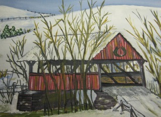Dealer #51 has a simple rendering of a snow covered bridge in oil.