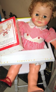Bound to happen after a full day of shopping this red gingham gal has lost a shoe!! Available from Dealer #88.