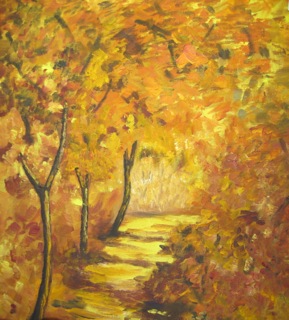 Dealer #80 has an oil painting of golden trees ablaze with color by Gil.