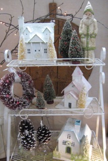 Dealer #46 has created a wonderland of treasures in their space. Here a Currier and Ives classic nests among vintage Holiday collectibles.