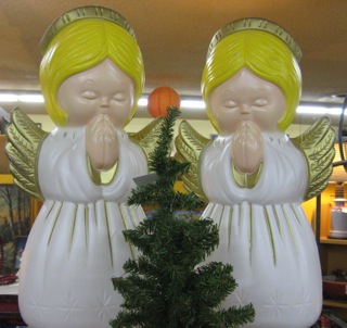 A bevy of vintage angels in wood and porcelain are heralding the Holidays. Available from Dealer #71.
