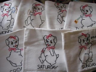 Embroidered towel set completes the week from Dealer #25. I always said if my dogs could vacuum they would be perfect.