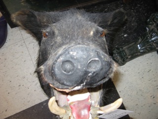 Dealer #36 doesn't disappoint with this boar head on the floor of her space! Many treasures are in this spot.