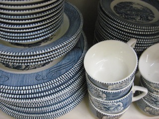 Dealer #97 has a very large set of Currier and Ives service in classic blue and white.