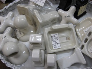 Even if you aren't in search of vintage porcelain parts for a repair; Dealer #74 has grouped a great selection of bath pieces in a wicker basket for another instant collection.