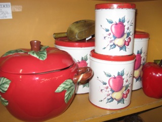 Themes in collecting are also an easy way to get started. Dealer #69 has taken the apple to a whole new level with canisters, bushel baskets, a cookie jar, and decorative apple shapes!