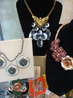 Dealer #77 also has a glass case filled with her jewelry. Made from all vintage bits and pieces reassembled in a new format, this is a great way to salvage and recycle all those broken bits and single earrings. With a great eye for color and balance each piece of Upcycled Jewelry has a story to tell from the past and the present.