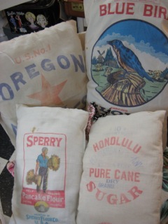 Soft cotton flour and sugar sack pillows show off colorful advertising and create a fresh accent. Dealer #55 has a nice selection in store now.