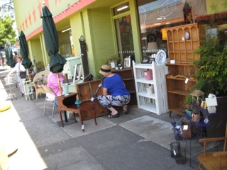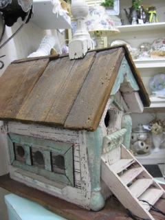 Let's take a look at several items within the Stars stores where salvaged, recycled, and repurposed materials create new form and function. Dealer #62 has this two story real estate for the birds composed of salvaged wood trims and screening.