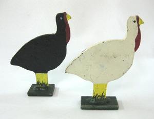 Folk art is one of our favorties. Dealer 99 seems to have quite a bit of it right now. We thought these turkeys were just quaint and quirky enough to work for a Thanksgiving decoration. They were probably from a shooting game of some sort. Priced at $35 each.