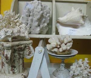Everywhere you look these days, coral & sea shells. They are a BIG decorating item right now. Dealer 99 has a good display of both coral and shells at good prices.