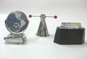 We thought these three moderne items were a find. The Flip calendar is only $6. The art deco shot glass is $9.50 and the Bentley cigarette lighter is $39. Buy one or buy them all from Dealer 54.