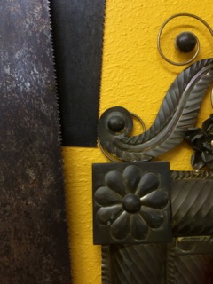 Dealer #99 juxtaposes rhythmic sawtooth blades with whimsical, curves and spirals of a mirror.