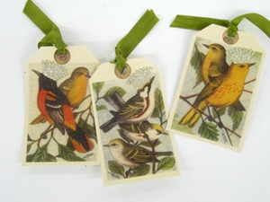 We are shopping this week in Dealer 77's booth space at Splendid. Shopping with Dealer 77 is a feast for the eyes. As an artist, her sense of color and style are always right on. And a good sense of humor added in too. She has created these bird gift tags. Of course we have used a number of her gift tags for our packages. They always get a response of our gift receipent. It makes us look real good. And they are only $1.50 each. Win, win that is our motto.