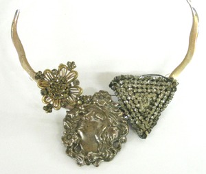 Glitter is good for mothers. They thrive on it. Dealer 36 creates these fabulous necklaces out of found objects. They are one of kind treasures. We were taken with this particular piece. She has this one priced at $249.