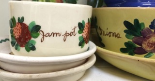 Back to a time when canisters and porcelain bowls were labeled for ease in daily cooking and organizing! Bauer pieces available from Dealer #118.