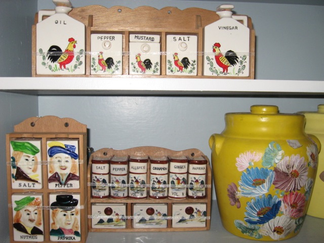 Key ingredients for cooking take on a whole new look in vintage spice racks and containers. Dealer #150 has a strong selection to choose from. Add the colorful crocks and the kitchen has a new look and feel.