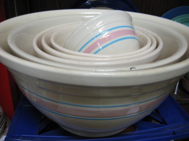 Dealer #118 has this set of six nesting bowls by McCoy; priced individually the pink and blue bands are a popular choice among collectors. Function, form, and a quick collection could be yours!!