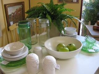 Dealer #2 has created the look and feel with the combination of white porcelain and green glass for the table. Mix and match and get this crisp look for your home as we feel the seasons change.