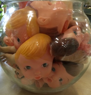 Filled to the brim with plastic doll heads…a unique table topper/centerpiece from Dealer #94.