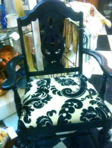 We think that you can never go wrong with black and white. Dealer 80 always seems to have something that we love. This black chair with its black and white fabric seat made the grade this week in our Let's Shop. Priced at only $99.